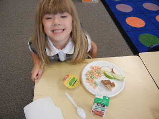 We also made necklaces out of 100 fruit loops and covered a "pizza" with 100 toppings. However, my camera is not cooperating and will not load some of the pictures. All these activities helped the students count to 100 by ones and tens!